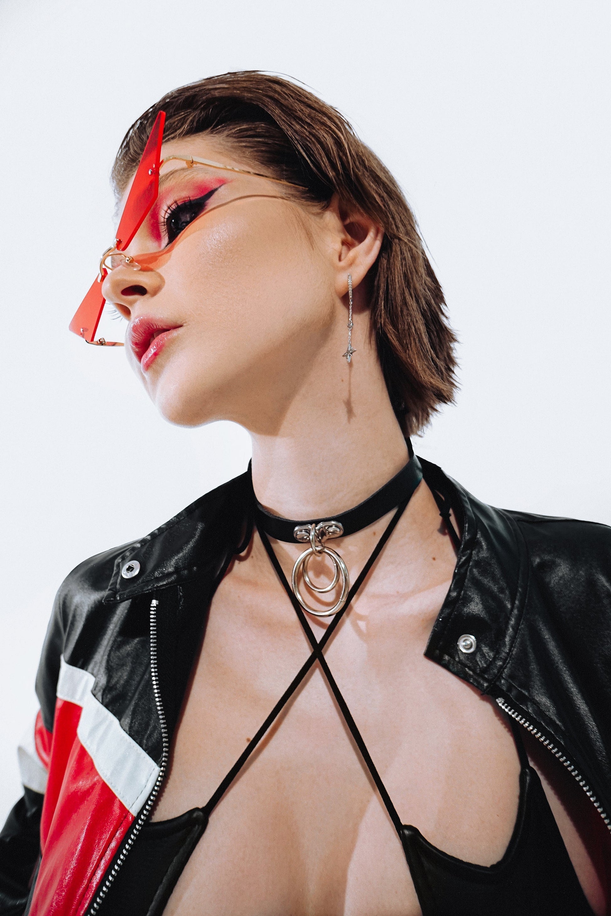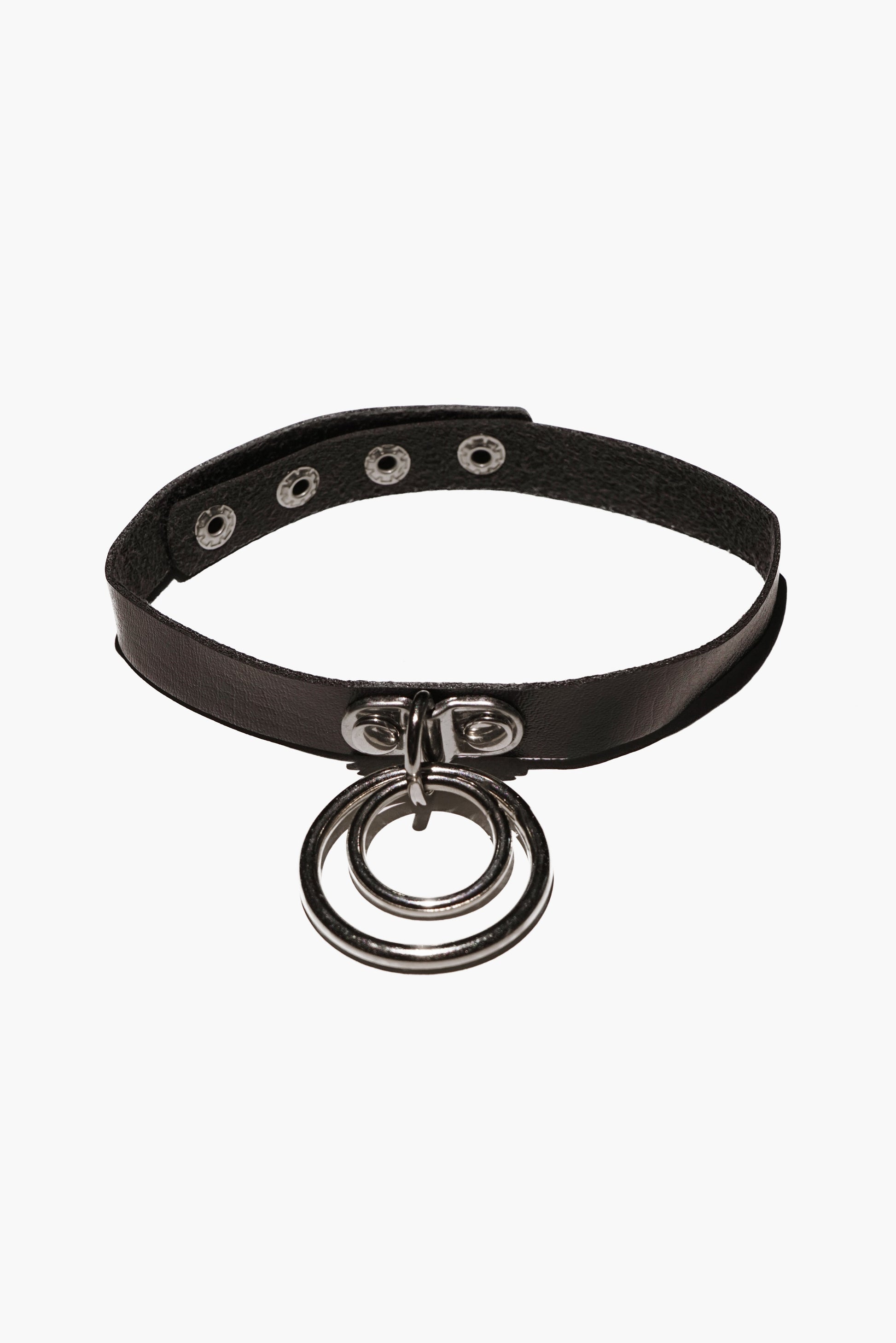 The "Dual Harmony" choker celebrates the harmonious interplay of contrasting elements. Its sleek black vegan leather band gracefully encircles the neck, exuding elegance and sophistication. Two dangling rings, one larger and one smaller, create a captivating focal point, symbolizing the seamless balance between strength and delicacy. This accessory enhances your rave style with its unique design, offering a striking combination of boldness and grace.