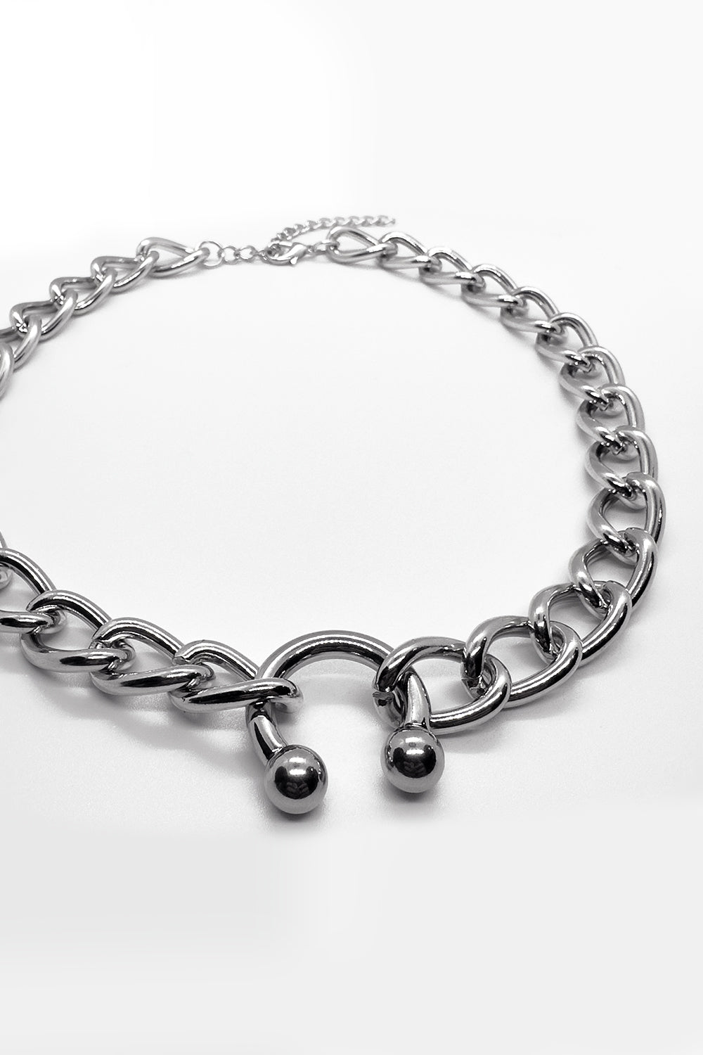 Made of silver stainless steel, the septum-inspired ring adds an unexpected twist to the chain choker design. One size.
