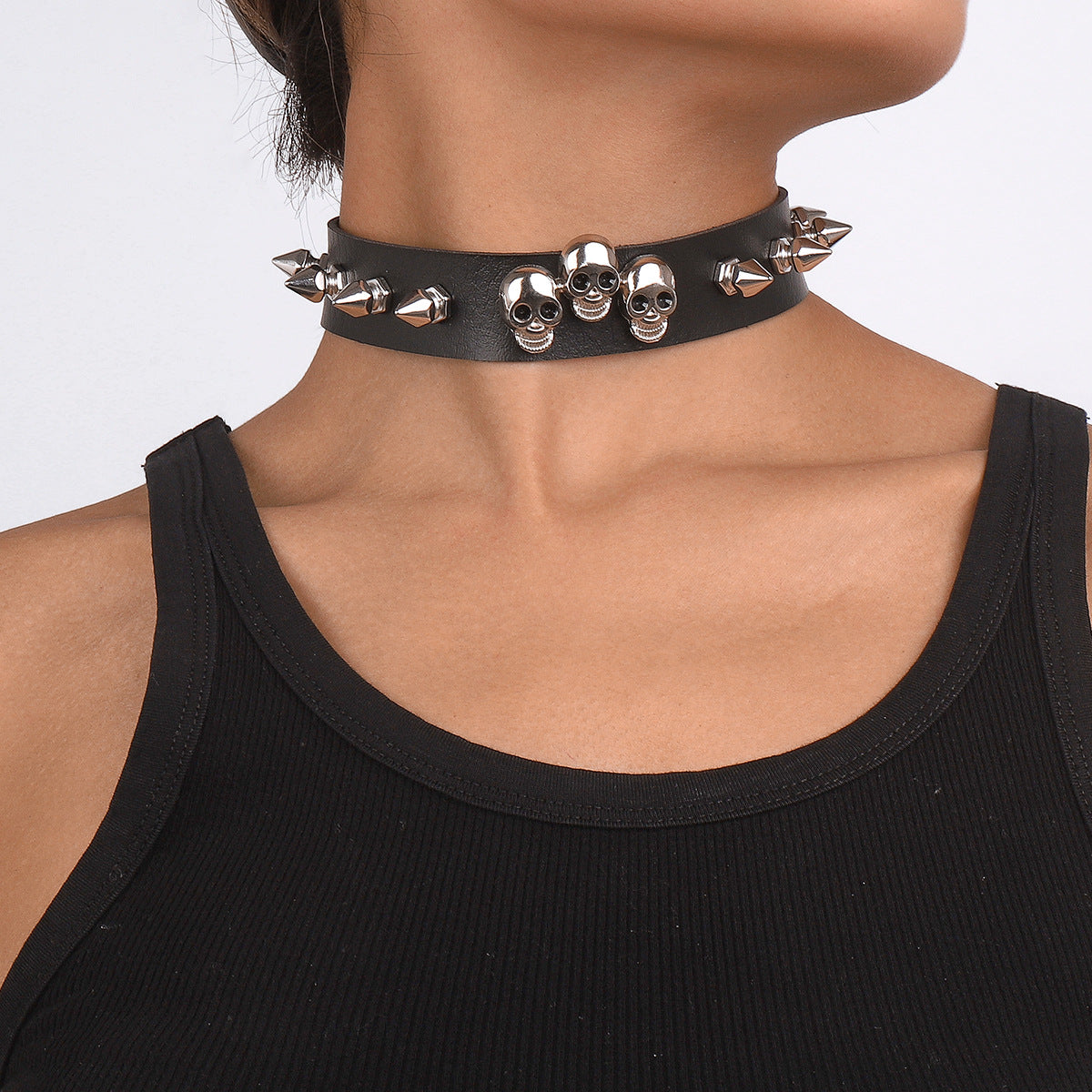 Embrace your dark side with the 3HEADZ Gothic Rivet PUNK RAVE Necklace. Featuring three skulls and edgy rivet details, this playful accessory adds a rebellious flair to any look. Perfect for those who love to mix gothic style with a fun, punk attitude.