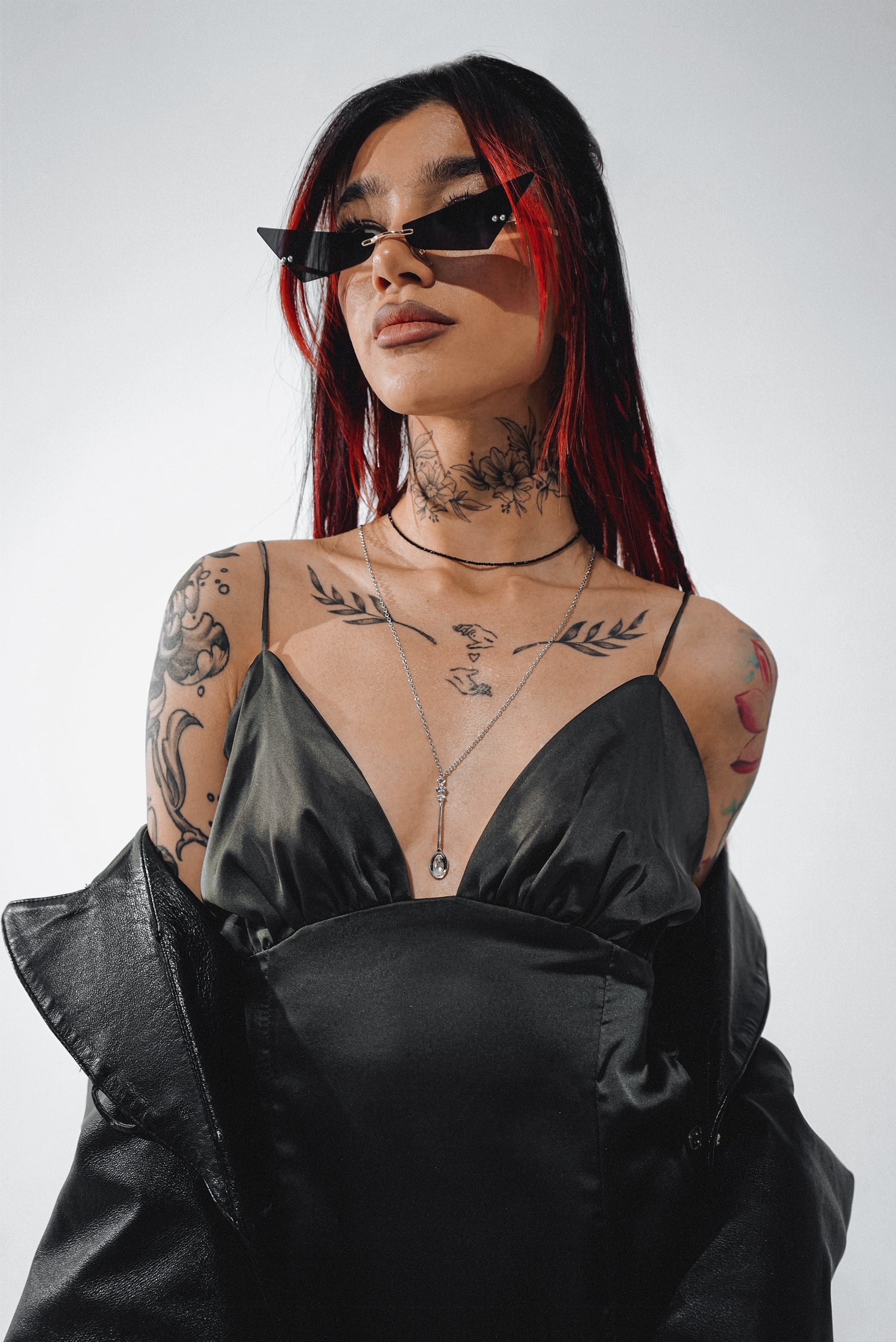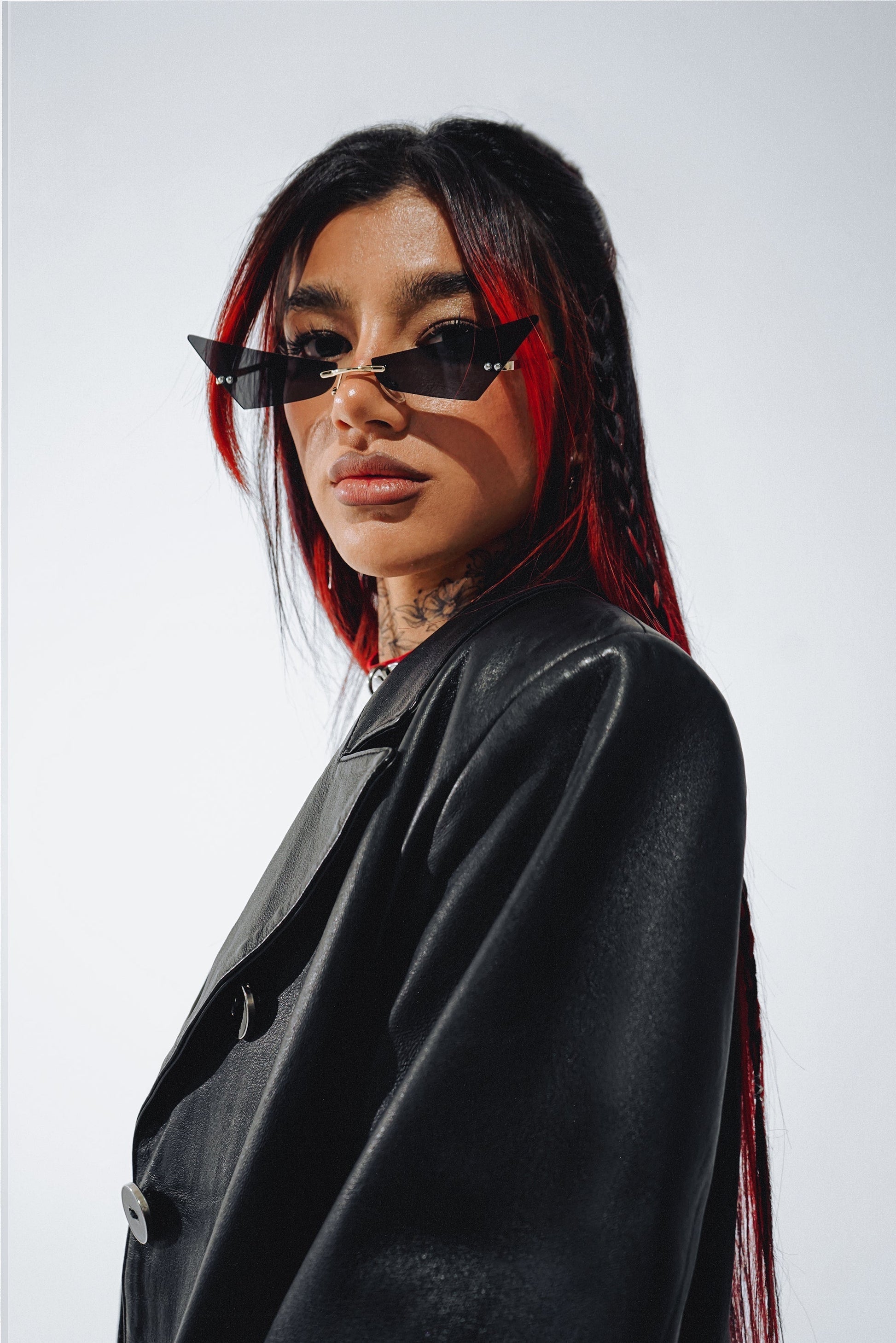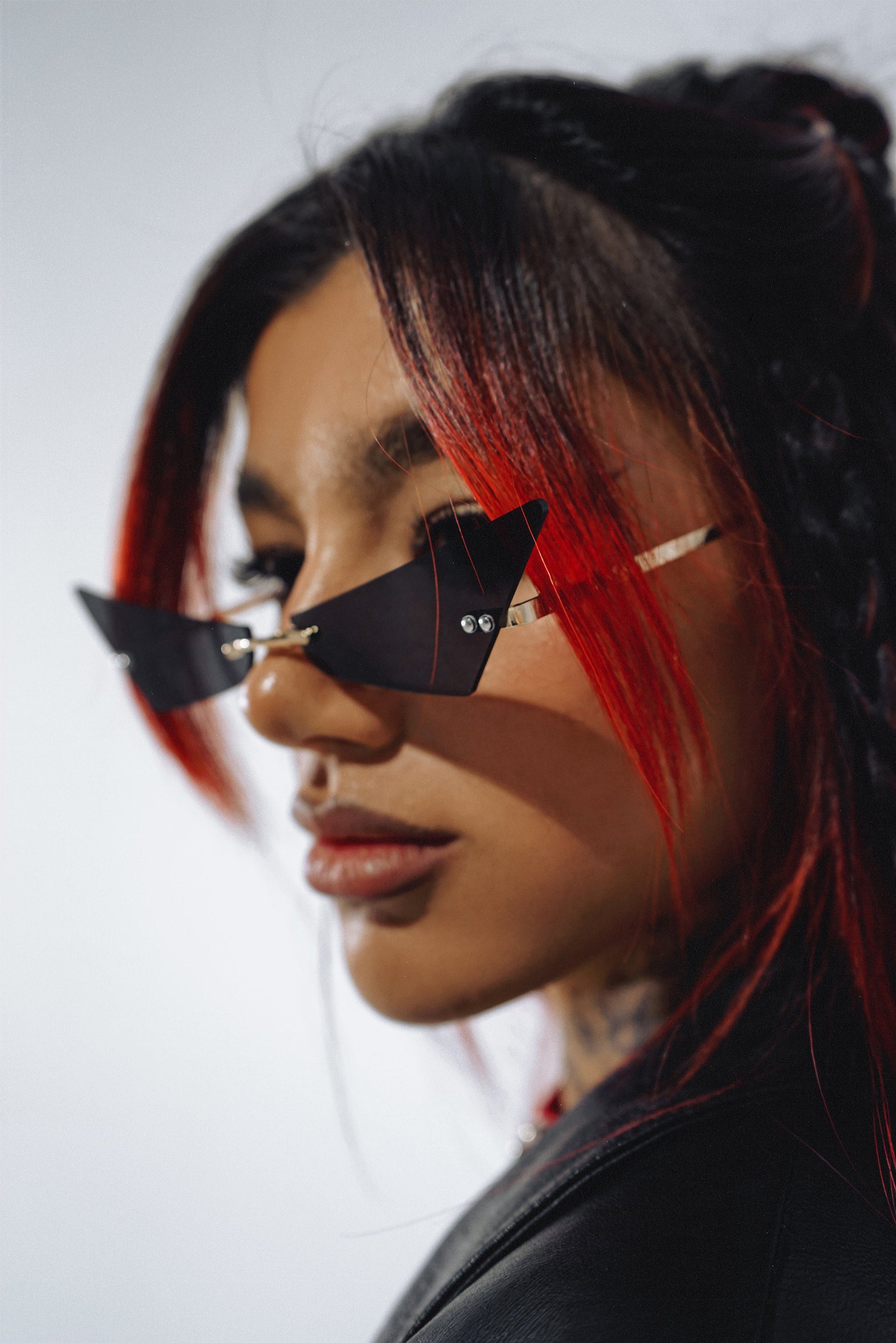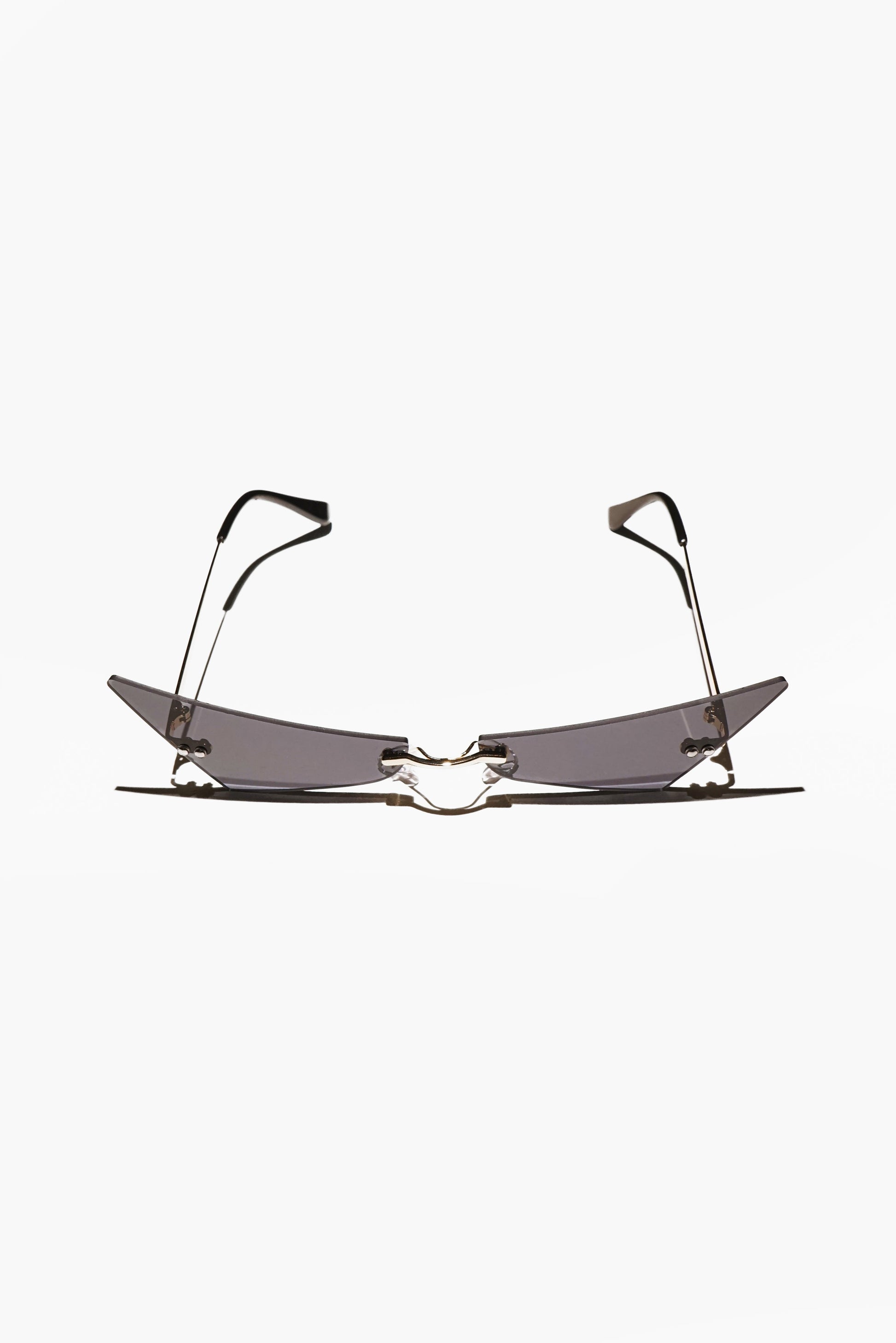 Step to the edge of style with "Shadow's Edge" sunglasses. Their sleek black frames and distinctively pointy design exude an air of mystique and sophistication. Embrace the allure of these statement-making shades, where sharp lines and a touch of rebellion converge, allowing you to view the world through a captivating lens of daring rave elegance.