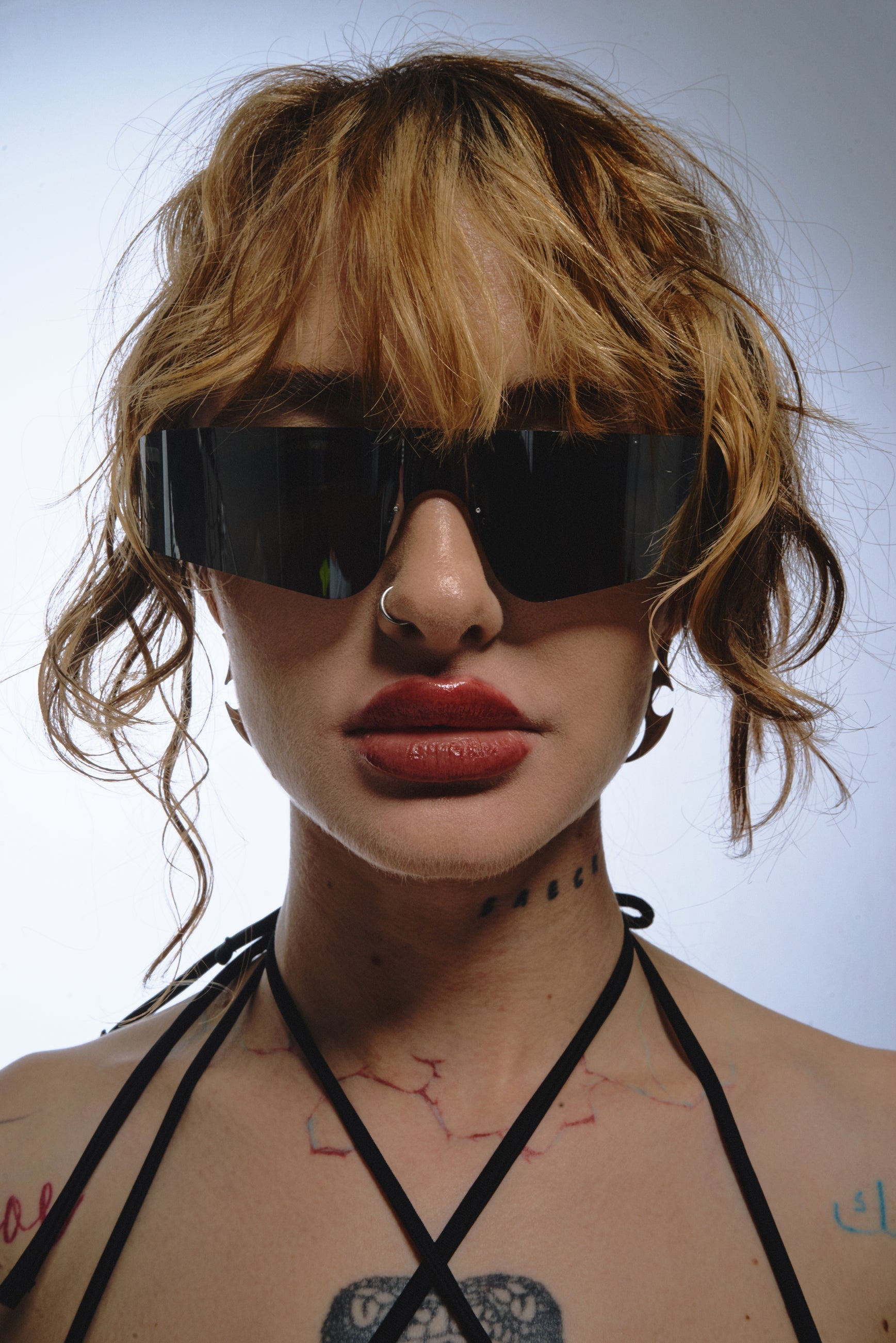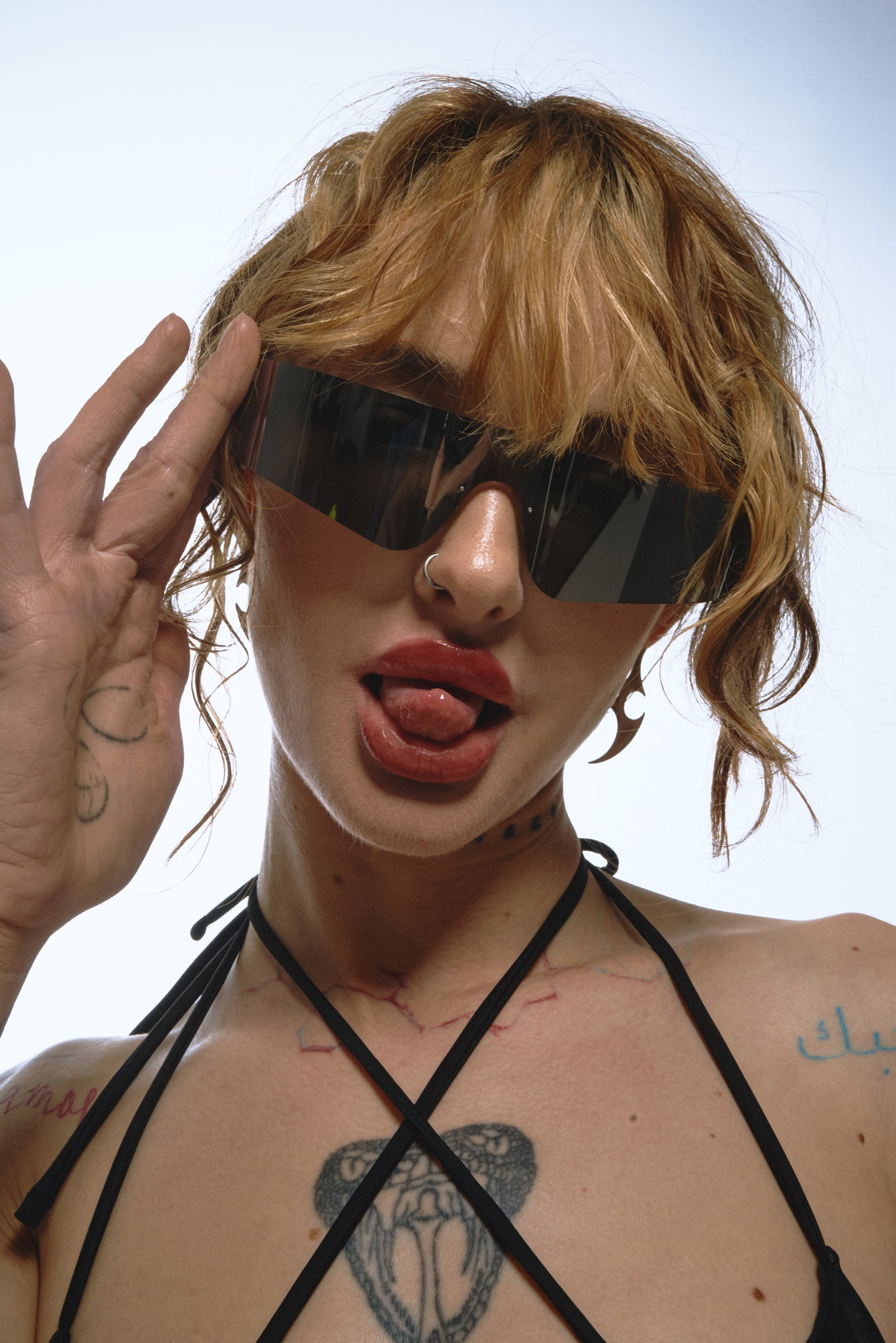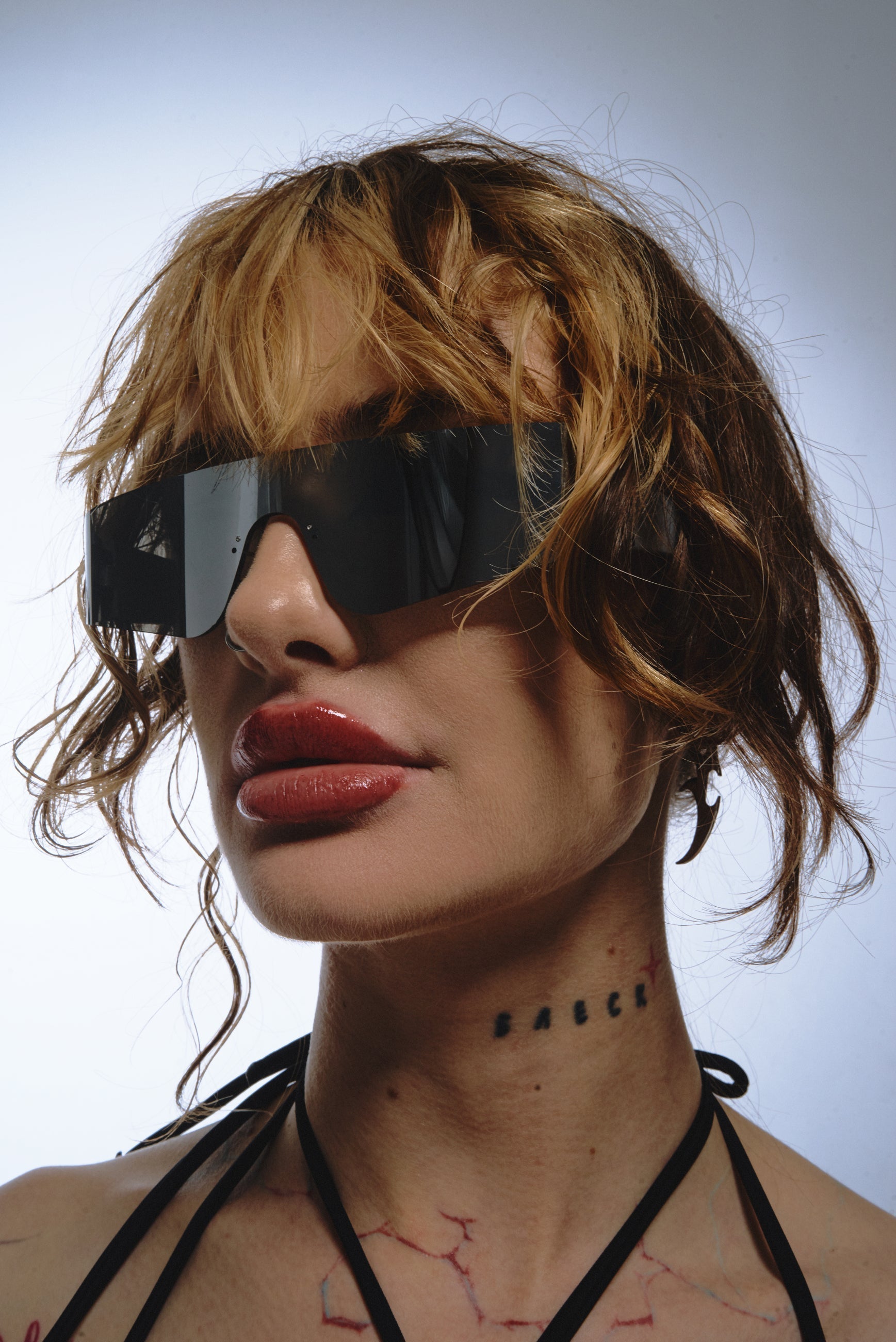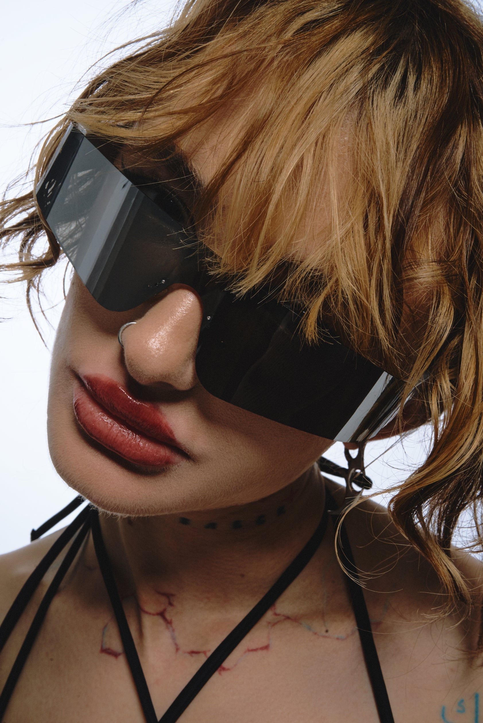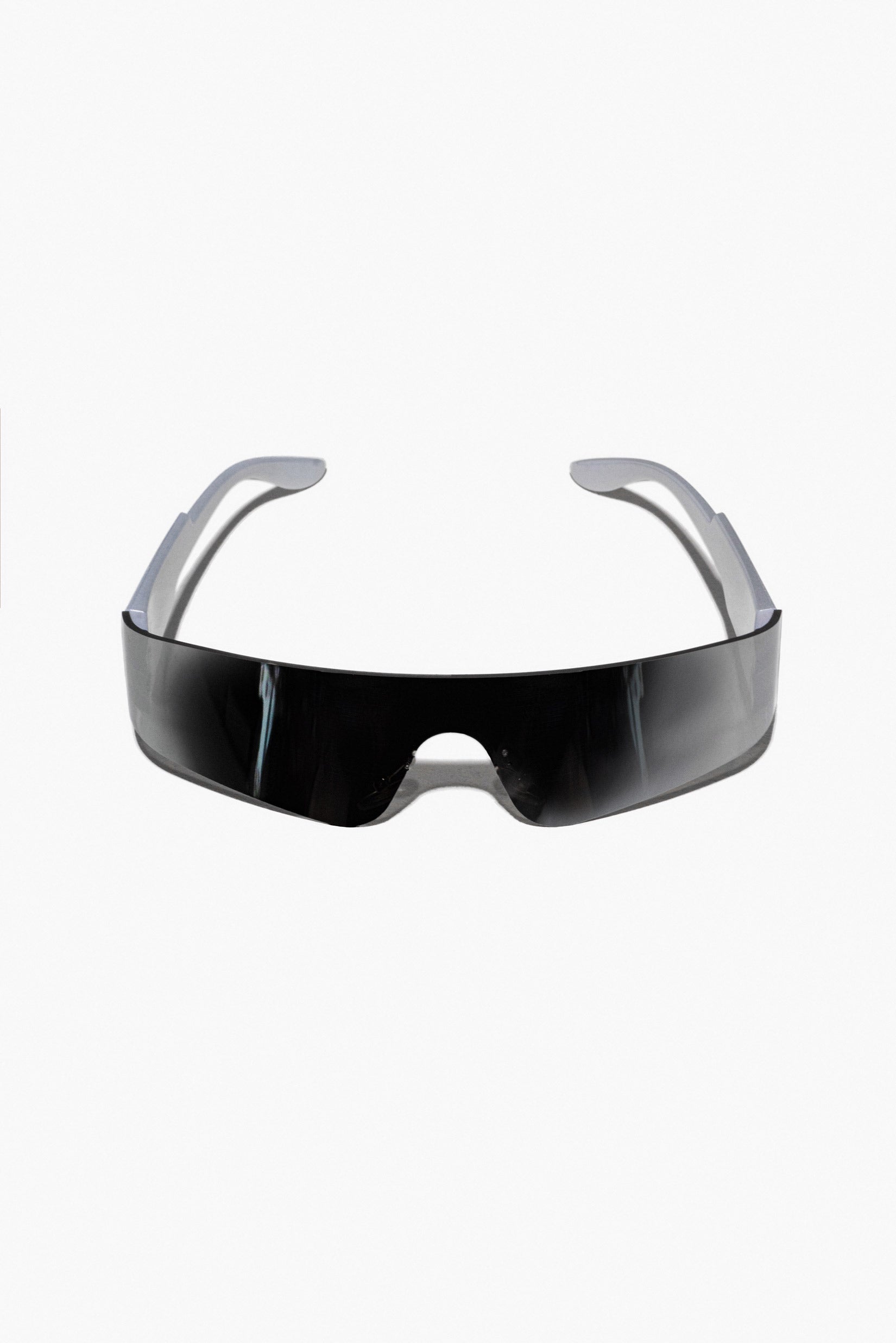 The glasses "Neo Chroma" exude a futuristic vibe with their sleek, wraparound lenses, creating a seamless and ultra-modern aesthetic. The dark tint provides UV protection while adding a touch of mystery to any rave outfit. Designed to be lightweight and comfortable, these glasses are perfect for enduring both sunlit techno festivals and long nights on the club's dance floor. Drawing inspiration from cyberpunk culture, the Neo Chroma glasses make a bold and unique statement, perfectly capturing the essence of the underground techno scene.