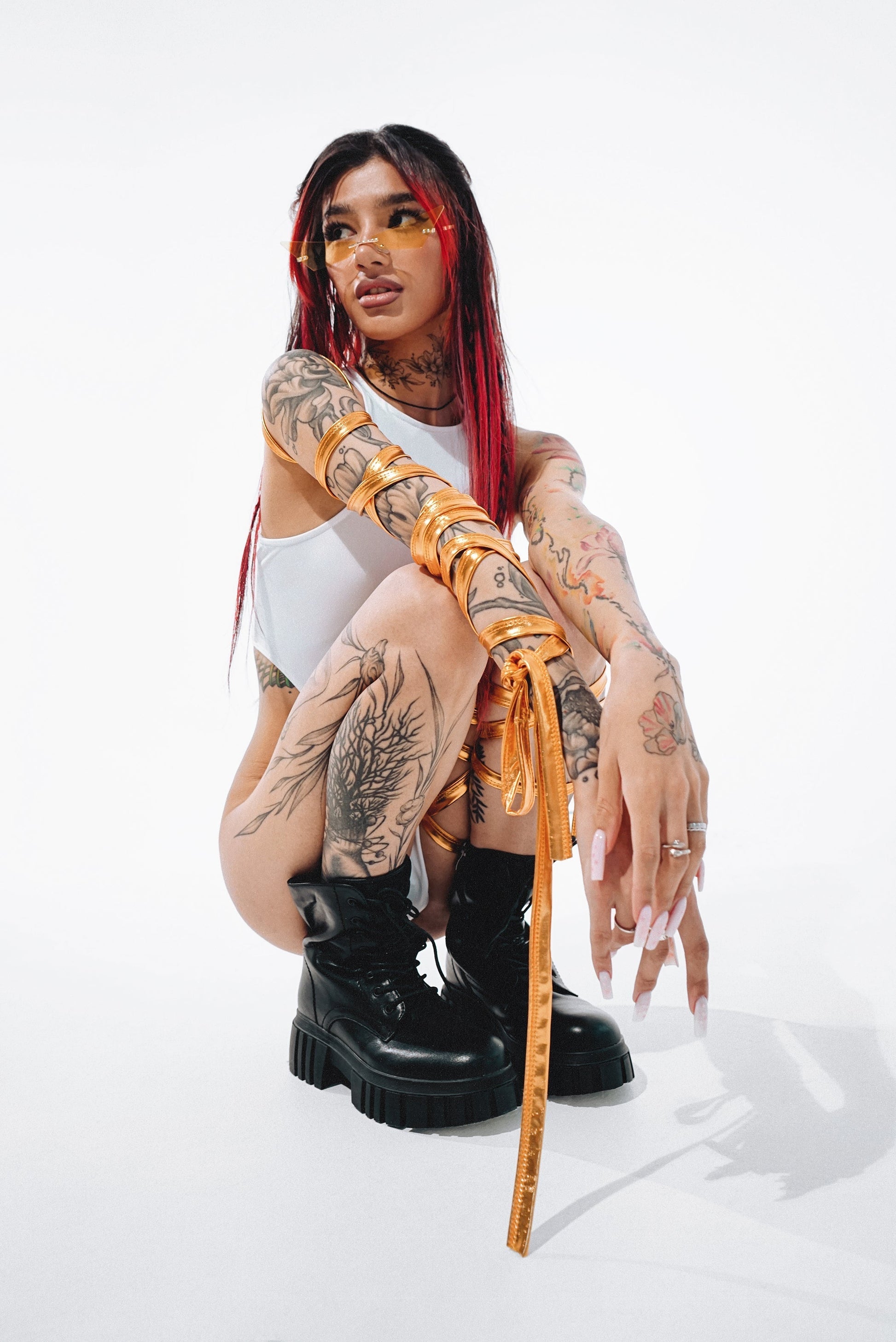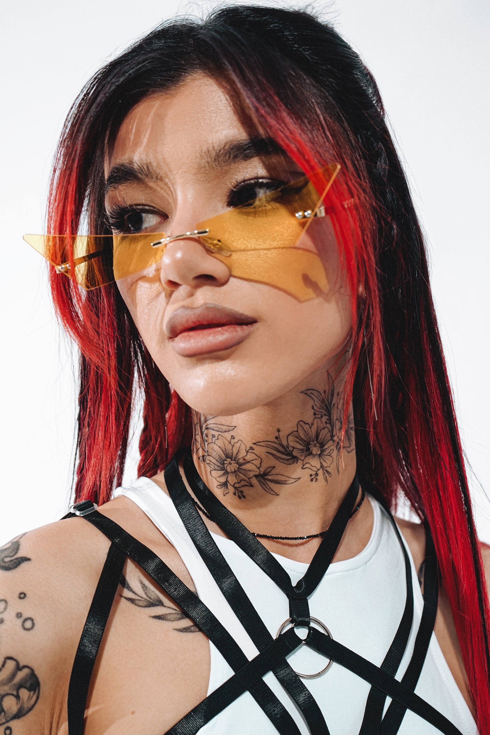 Illuminate the dance floor with "Yellow Shadow's Edge" sunglasses. The sharp, yellow frames command attention, while the pointy design embodies the raw energy of rave culture. These sunglasses electrify your look, merging futuristic style with a rebellious edge. Step into the pulsating beats of the scene, embracing the vibrant energy that surrounds you.